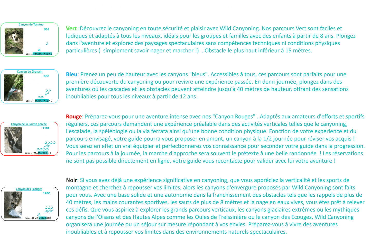 Afin de vous offrir une expérience de canyoning parfaitement adaptée à vos envies et à votre niveau, Wild Canyoning vous propose une sélection de critères à prendre en compte lors de votre choix :